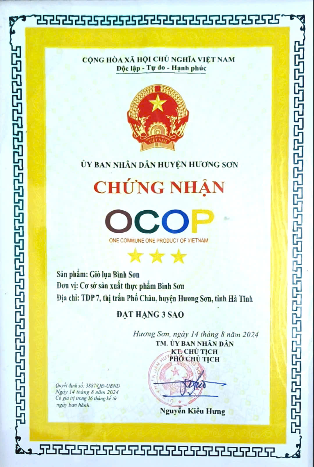 - Nem chua Y Bình và Giò lụa Bình Sơn đã đạt chứng nhận sản phẩm OCOP 3 sao và là sản phẩm Công nghiệp nông thôn tiêu biểu qua các năm 2017, 2019, 2021, 2025.